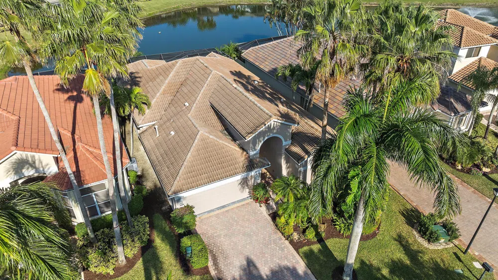 BRAND NEW 2025 ROOF! With 50 FEET OF WATER FRONTAGE, this 3BR/2.5BA upgraded home expands beautifully to the outdoors. Enjoy serene water views from this 2200 SF single-family home. The popular Hamilton floor plan offers soaring ceilings, and generous space. Accordian shutters and Impact Glass double front doors provide ample hurricane protection. Light, bright, and neutral, this immaculate home boasts a redone primary bath, upgraded kitchen with stainless appliances, granite counters, and elegant subway tile backsplash. The large screened enclosure provides fabulous outdoor living space, overlooking the premium lake view. Many upgrades throughout the property: Garage storage units with shelving, Water heater replaced in 2022, High Boy commodes, designer light fixtures and window treatments, built-in desk in third bedroom, closet built-ins, replaced flooring in primary and guest bedroom, frameless shower doors, new garbage disposal (2024), and more! The Club at Ibis is a Platinum Club of America community that boasts a 90,000 sq. ft. clubhouse, three 18-hole Nicklaus-family Championship golf courses, five restaurants, a world-class fitness complex and spa, and incredible tennis and pickleball facility.
