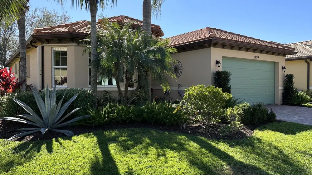Looking for a quiet secluded impeccably maintained house with 2 bedrooms and a den, 2 bathrooms and 2 car garages, search no more. This bungalow style located in the sought-after gated community of TownPark has all you are looking for with its spacious layout featuring lots of luxury upgrades such as: 42'' kitchen cabinets, granite countertop, updated stainless steel appliances, tile and laminate flooring, crown molding and large windows providing abundant natural sunlight. Located on south exposure lot with no back neighbors, you will enjoy the large 700 sqft screened lanai with family and friends. In addition, the F5 rated accordion shutters will provide you with piece of mind. Recent updates include: new A/C unit, interior paint throughout the house and professional landscaping. If you are looking for a turn key, the furniture in this house is negotiable. Don't miss this opportunity to own your slice of paradise. Buyer to verify information and measurements.