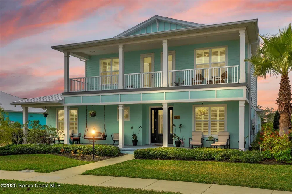 Are you looking for a pool home with river and rocket launch views on the Space Coast? This 2018 custom-built home is ready for it's new owners! On the first floor, enter into a living space that can be opened up to the pool deck - the epitome of the Florida lifestyle. This home features a main floor primary suite, with double closets, pool door, and oversized walk-in shower. Also on the first floor, enjoy a office/flex space, custom eat-in kitchen, large pantry, built-in electric fireplace, and half bath. Upstairs there is even more living space, a large covered balcony, and the remaining three bedrooms. In your backyard, enjoy a large covered patio space, your outdoor shower, and mature mango and avocado trees! The hurricane-rated shed adds additional storage to your already large, 2-car garage. The community features a residents'-only dock, perfect for dolphin watching or rocket launch viewing! Being the only home for sale in this exclusive community - don't wait to schedule a tour