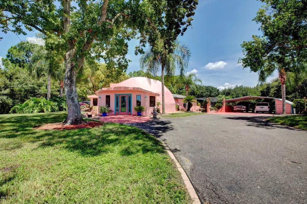 Unique! Beautiful Pool Home. Here is your chance to own a super strong, energy efficient Dome house from American Ingenuity on almost 2 acres of land with your own pond. Large family room with sliders looks out to the screened pool and hot tub. Take the beautiful spiral staircase upstairs to your private master bedroom and bathroom which was renovated in 2013. Send your laundry down the chute. Front office/sunroom could be used as a 4th bedroom. Living room has a built in to hold the TV and electronics. Kitchen with a breakfast bar and walk in pantry. Every room has been upgraded. House has a generator. Pool and water heater is solar ready. You will enjoy the fruit trees of lemon, tangelo and pineapple guava. Two fish ponds, one shaped like a guitar. Riding lawn mower included.
