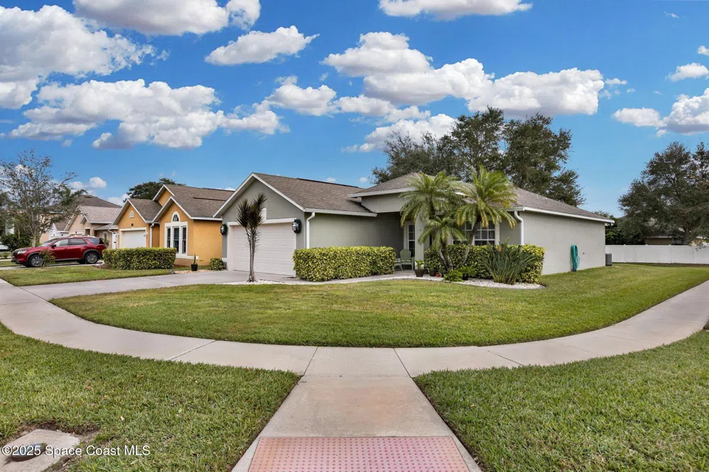 This exceptionally well-maintained home, situated on a private corner lot, with no back neighbors has been carefully preserved and features 3 bedrooms, 2 bathrooms, and a spacious layout that offers privacy with rooms thoughtfully separated. The large sunroom is a true highlight, providing a relaxing space the current owners enjoy daily. The home also boasts a brand-new 2024 HVAC system and hot water heater, and is connected to city water and sewer. The HOA maintains the lawn, so you can spend more time enjoying your surroundings. Located in the heart of the Space Coast, this home is just minutes from shopping, schools, and the Kennedy Space Center. Don't miss your chance to make this beautifully cared-for home yours.