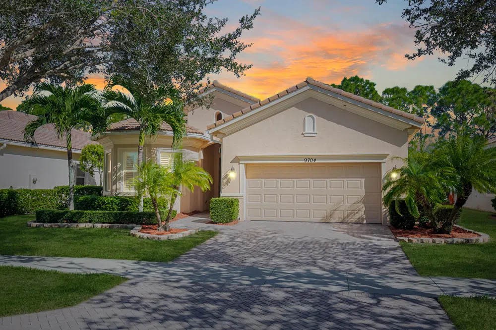 Indulge in the epitome of Florida living in this stunning 2/2/2 with office in PGA Verano! Boasting diagonal tile floors, an open layout. Crown molding graces the main areas, while plantation shutters enhance the front guest room. The kitchen has granite countertops, 42'' wood cabinets, stainless steel appliances, and a 4-door refrigerator. Flex room is perfect as home office or media room with built in shelves. A spacious laundry room with a utility tub adds convenience. Enjoy serene golf course views from your covered and screened paver lanai. HOA dues provide access to world-class amenities, including state-of-the-art fitness centers, indoor/outdoor pools, tennis courts, and pickleball. Relax knowing lawn care and cable are included. Available for immediate purchase.